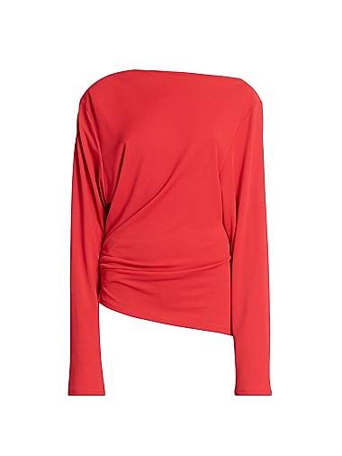Топ Croisiere от Jacquemus с драпировкой, лодочным вырезом и асимметричным подолом, 82% вискоза