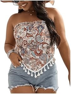 Топ для полных женщин с принтом пейсли, асимметричным подолом и бахромой Floerns