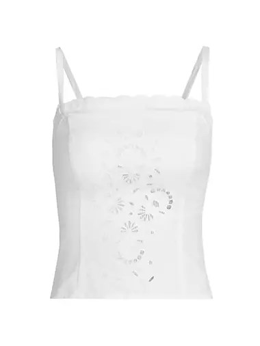 Топ из льна с вышивкой и регулируемыми бретелями от Reformation Eva с облегающим силуэтом