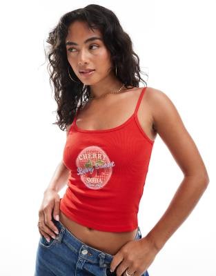 Топ Miss Selfridge в винтажном стиле с графическим принтом черешни, с открытой горловиной и укороченным кроем