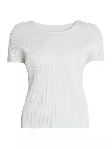 Топ Monthly Colors: April от Pleats Please Issey Miyake имеет стильный круглый вырез и короткие рукава.