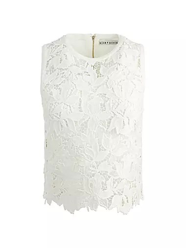 Топ Danielle от Alice + Olivia выполнен с замысловатым кружевным дизайном спереди и круглый вырез.
