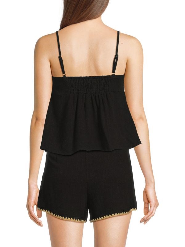Топ Vintage Havana с оборками и контрастной строчкой, 85% вискоза, 15% лен