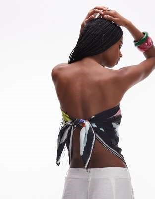 Topshop Шарф из сатина с абстрактным принтом, квадратная форма, завязка, многофункциональное использование