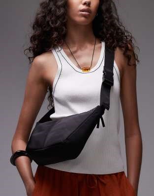Topshop Сумка через плечо Carrie из черного нейлона с застежкой-молнией и регулируемым ремнем