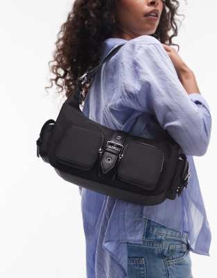 Topshop Сумка через плечо Sunrise из гладкой черной ткани с четырьмя карманами и застежкой на молнию