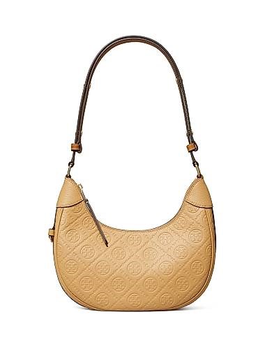 Tory Burch Кожаная сумка через плечо с текстурной отделкой и монограммой T, размер 21 x 24 см, с одним карманом