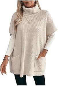Трикотажное вязаное платье-свитер Floerns с высоким воротником и объёмными рукавами