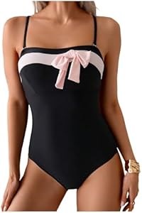 Цельный купальник Verdusa с бантиками, однотонный, регулируемыми бретелями и высоким вырезом, из мягкого материала