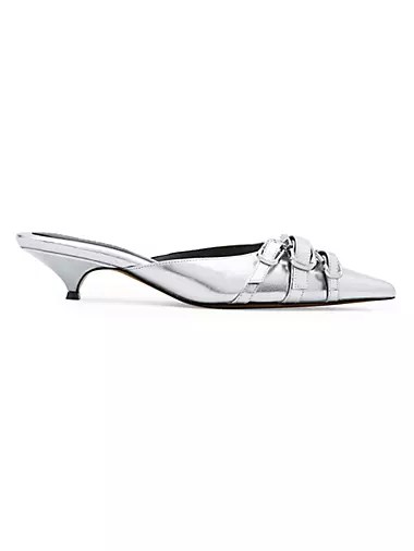 Туфли The Emma от Marc Jacobs выполнены из блестящей металлической кожи и имеют скромный каблук-кошку высотой 35 мм.