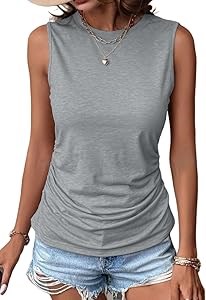 Особенности: Топы без рукавов с рюшами создают эффект slimmer и более нарядный образ. Свободный крой с округлым вырезом позволяет легко сочетать стиль и комфорт, идеально подходит как для работы, так и для отдыха.