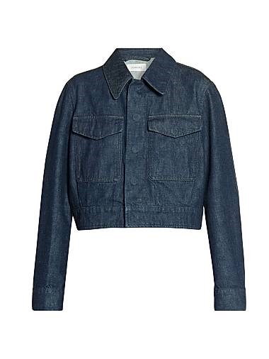 Укороченная джинсовая куртка Lemaire из 100% хлопка с накладными карманами на груди и длинными рукавами