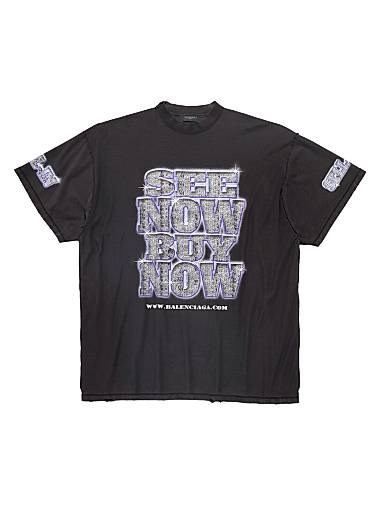 Укороченная футболка Balenciaga из винтажного хлопка с эффектом внутри наружу и принтом по всей поверхности