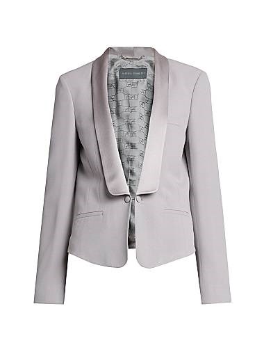 Куртка Alberta Ferretti с укороченным кроем выполнена в винтажном мужском стиле и дополнена сатиновыми лацканами.