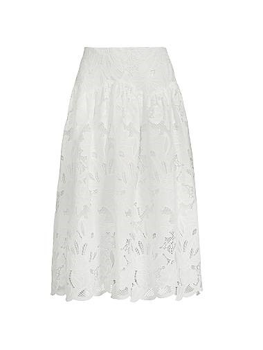 Юбка-миди Roxie от Ungaro выполнена из intricate garden embroidery lace и оформлена элегантным силуэтом с баской.