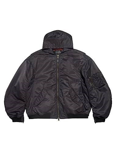 Утеплённая куртка-бомбер Balenciaga с капюшоном, изготовленная из переработанного текстиля, с карманом на рукаве и двойной молнией