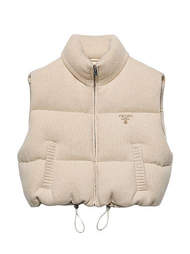Утепленный жилет Prada из шерсти и кашемира с гусином пухом и вязаным воротником