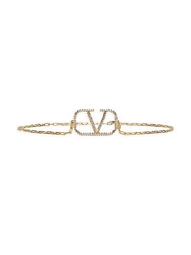 Valentino Garavani Итальянский цепной пояс с легкой позолотой, логотипом и пряжкой, инкрустированной кристаллами Swarovski