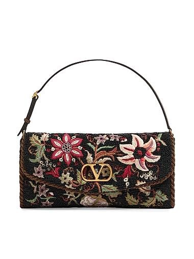 Valentino Garavani Компактная вышитая сумка через плечо с регулируемым ремнем из тонкой кожи и магнитной застежкой