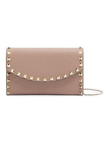 Valentino Garavani Кошелек из зернистой телячьей кожи с платиновой отделкой и цепочкой, с внутренними карманами