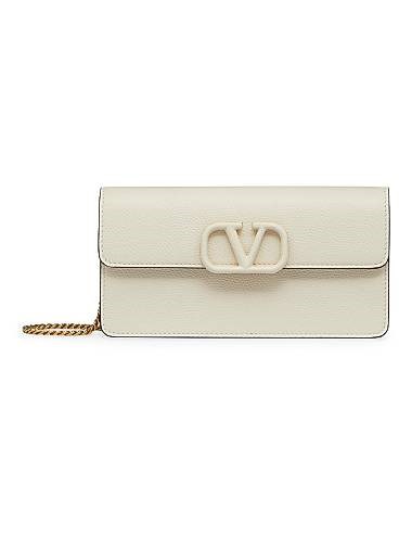 Valentino Garavani Кошелек из зернистой телячьей кожи с цепочкой, 8 слотами для карт, 2 отделениями, магнитной застежкой