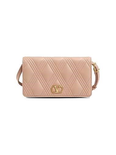 Valentino Garavani Миниатюрная кроссбоди-сумка из нубука с отделкой из стеганой кожи и регулируемым ремнем