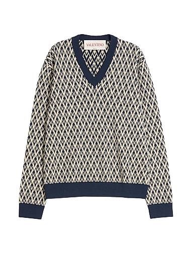 Шерстяной свитер Valentino с узором Toute la V, охватывающим всю поверхность.