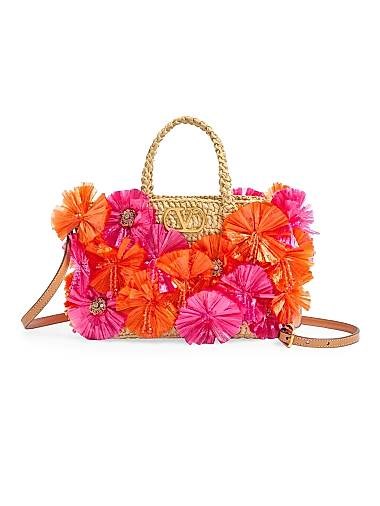 Valentino Garavani Сумка-шоппер из синтетической раффии с объемными цветами и регулируемым кожаным ремнем