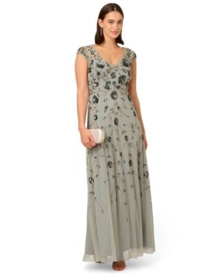 Вечернее платье Adrianna Papell с V-образным вырезом и бисерной отделкой, короткими рукавами и подкладкой для женщин