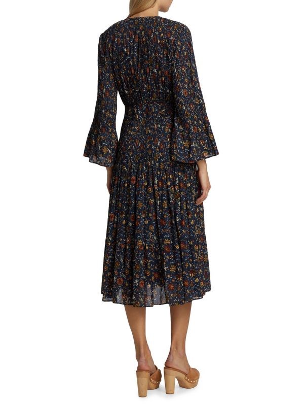 Veronica Beard Платье миди с цветочным принтом и аккордеонными складками Shireen из 100% хлопка