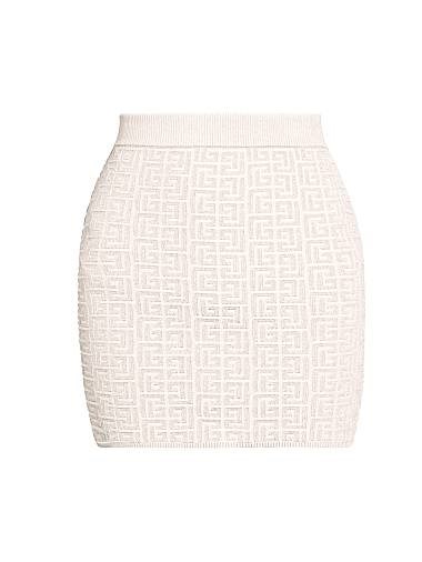 Вязаная мини-юбка из глиттера Balmain с текстурным монограммным дизайном и рибаным краем
