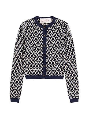 Вязаный кардиган из шерсти с жаккардовым узором V, украшенный пуговицами VLogo, от Valentino Garavani