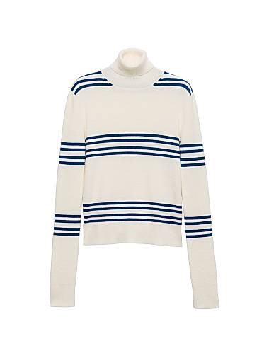 Вязаный свитер Prada из 100% шерсти с высоким воротником, ребристой вязкой и облегающим силуэтом