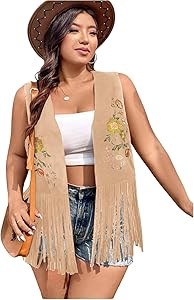 Вышитый жилет с бахромой для полных женщин в хиппи-стиле от Verdusa