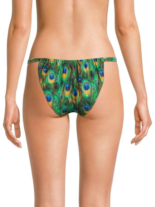 WeWoreWhat Бикини с присборенной отделкой и принтом павлиньих перьев, низкая талия, регулируемые боковые завязки