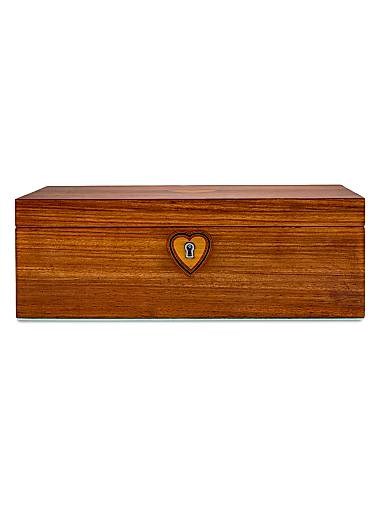 From the Ballet Collection. Inspired by Philipp Wolf III’s original turning ballerina box he designed in the 1950s, this beautiful jewelry box has a walnut wood veneer exterior with heart-shaped marquetry. Inside, find turquoise ultrasuede jewelry compartments with lusterloc™ and an embroidered backdrop framing a heart-shaped mirror featuring the castle and enchanted rose forest from the traditional fairy tale. Two interchangeable hand-painted ballet dancers with different skin tones who dance to Tchaikovsky’s Sleeping Beauty waltz and a rose-themed key add to the magic of this very special jewelry box.