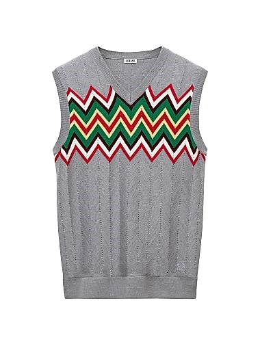 Яркий зигзагообразный V-образный свитер Loewe без рукавов из стретчевой шерсти