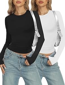 Yogingo Базовые женские короткие топы Y2K с длинными рукавами, белые и черные, облегающие, идеальны для лета и осени