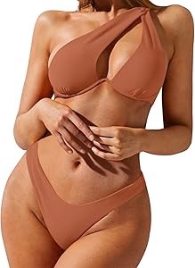 Риббленый купальник с сексуальным верхом на одно плечо и низом с высоким вырезом подчеркнет ваши формы и сделает вас более привлекательной.