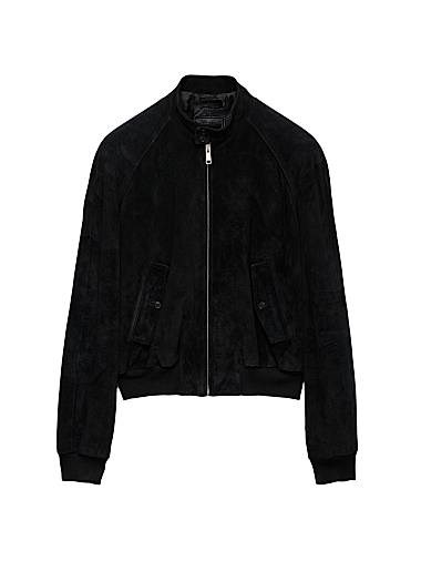 Эта замшевая бомбер-куртка переосмыслена с винтажным акцентом, ее классический силуэт обновлен благодаря деликатной обработке, которая добавляет глубину и характер мягкой замше.