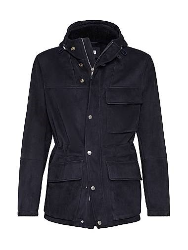 Замшевая парка с овечьим мехом от Brunello Cucinelli из Германии - двойная застежка, подкладка, регулируемый капюшон