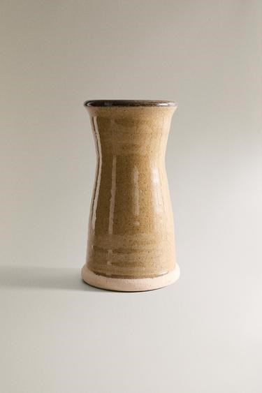 Zara Home Керамическая цилиндрическая ваза с блестящей поверхностью, суженная в центре, для воды