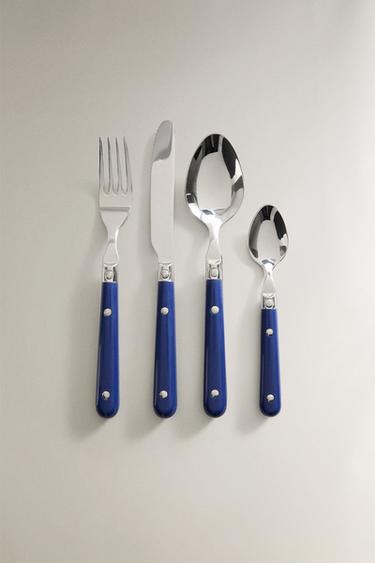 Zara Home Набор из 4 столовых приборов из нержавеющей стали с эргономичными рукоятками из синего акрила