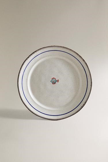 Zara Home Прочная керамическая тарелка для ужина с рыбным узором в центре