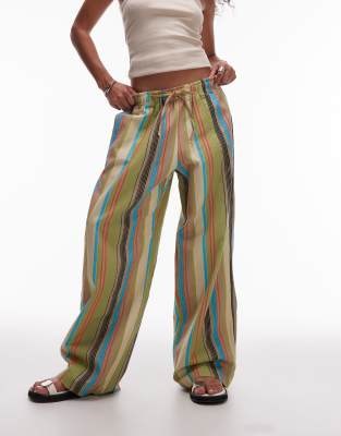 Зауженные штаны Topshop с эффектом льна, в полоску, с карманами и шнуровкой на талии