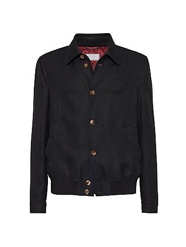Жакет Brunello Cucinelli из льна, шерсти и шелка с пуговицами и множеством карманов