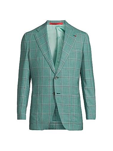 Изготовленный из смеси итальянской шерсти, шелка и льна, этот классический жакет Isaia имеет клетчатый узор в стиле окна. Характеристики: