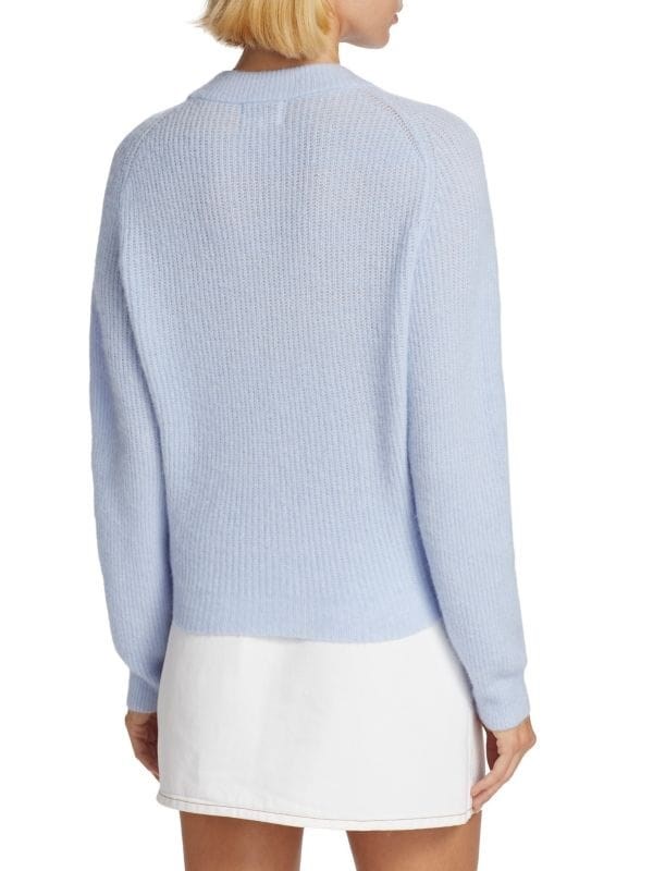 Стильный кардиган из ребристой вязки от Ganni с расслабленным силуэтом и V-образным вырезом.
