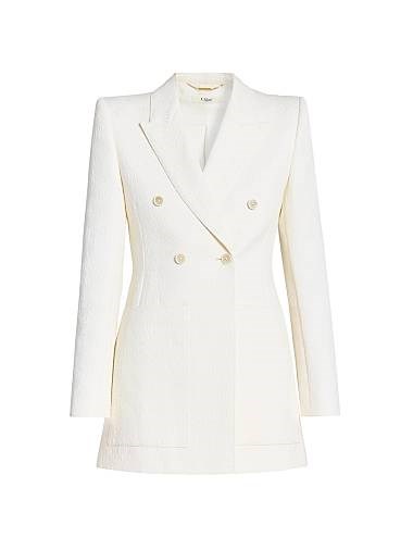 Этот жаккардовый блейзер от Chloe, выполненный из итальянского шелка, отличается стильными пиками на лацканах и двубортной застежкой.
