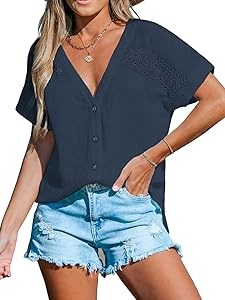 Женская блуза CUPSHE из 100% хлопка с V-образным вырезом и короткими рукавами, идеальная для работы и отдыха